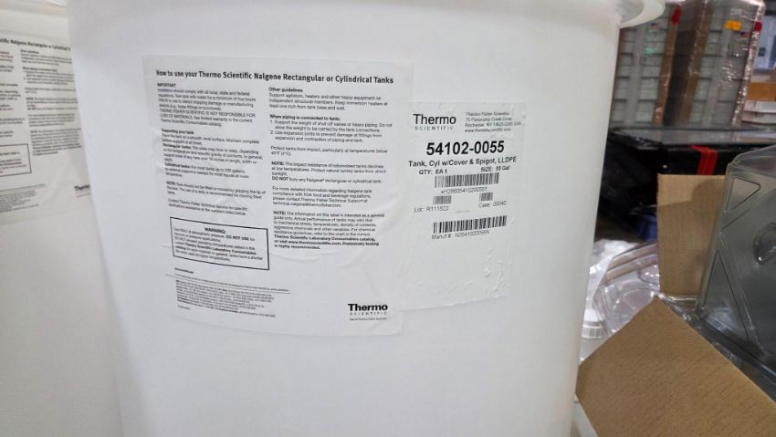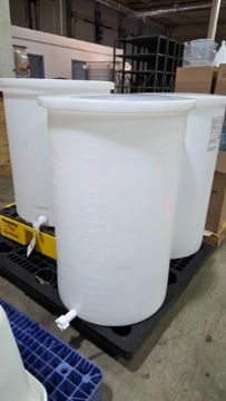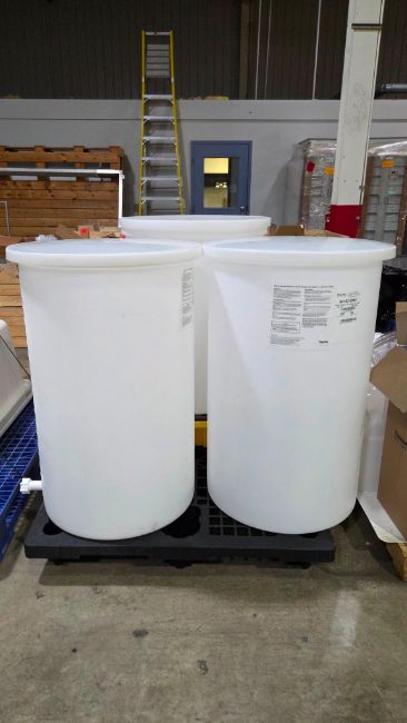 (3) 55 GALLON THERMO SCIENTIFIC 54102-0055 LLDPE TANKS W/ COVER & SPIGOT