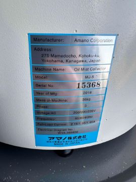 2018 AMANO MJ5 MIST COLLECTOR - NEW, NEVER INSTALLED