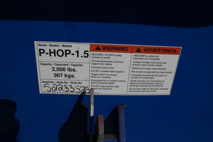 VESTIL P-HOP-1.5 2000 LB CAPACITY HOPPER, NO CONTENTS