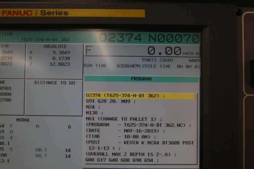 Z AXIS RAPID TRAVERSE RATE FAST 1,890 IPM