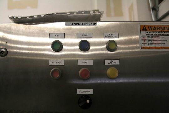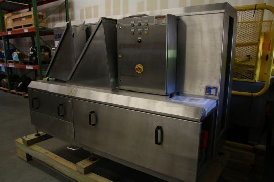 WASHING METHOD: HIGH-PRESSURE SPRAY WASHING SYSTEM CYCLE TIME: 2-3 MINUTES PER PALLET MAX PALLET SIZE: 48 IN. X 40 IN. CONVEYOR TYPE: AUTOMATIC ROLLER OR CHAIN CONVEYOR ELECTRICAL REQUIREMENTS: 480 VOLTS, 3 PHASE, 60 HERTZ AIR REQUIREMENTS: 80 PSI, 10 CFM DIMENSIONS: 120 IN. X 60 IN. X 72 IN. WEIGHT: 1,500 LBS