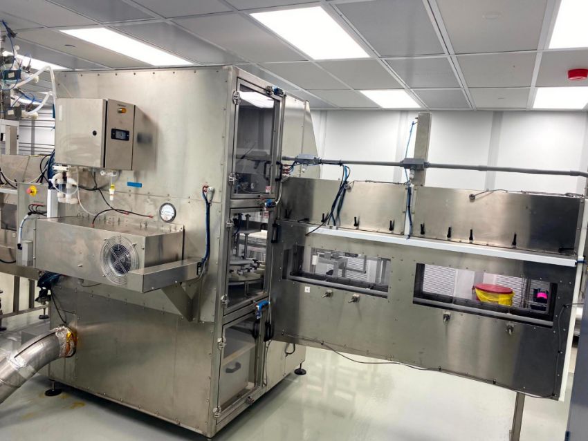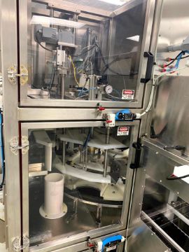 SYSTEM DESIGNED TO HAVE JARS WITH DUST CAP MANUALLY LOADED ONTO THE INFEED, RINSE THE JAR EXTERIORS INSIDE OF AN AIRLOCK, HAVE DUST CAP REMOVED, JAR FILLED, AND THEN CAP APPLIED VIA CHUCK CAPPER BEFORE EXITING INTO AN AIR LOCKED ACCUMULATION AREA FOR MANUAL REMOVAL.